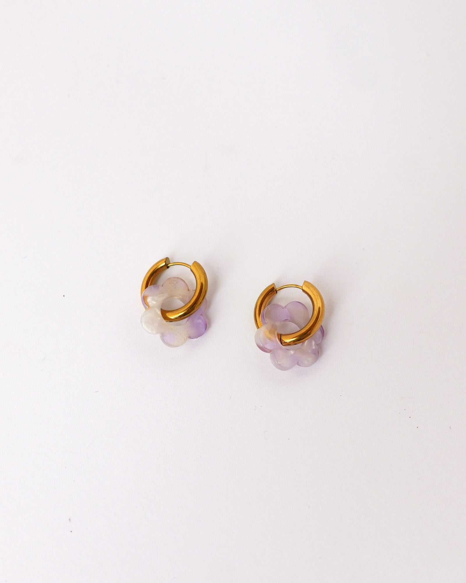 Boucles d'oreilles créoles fleurs - mauve blanc