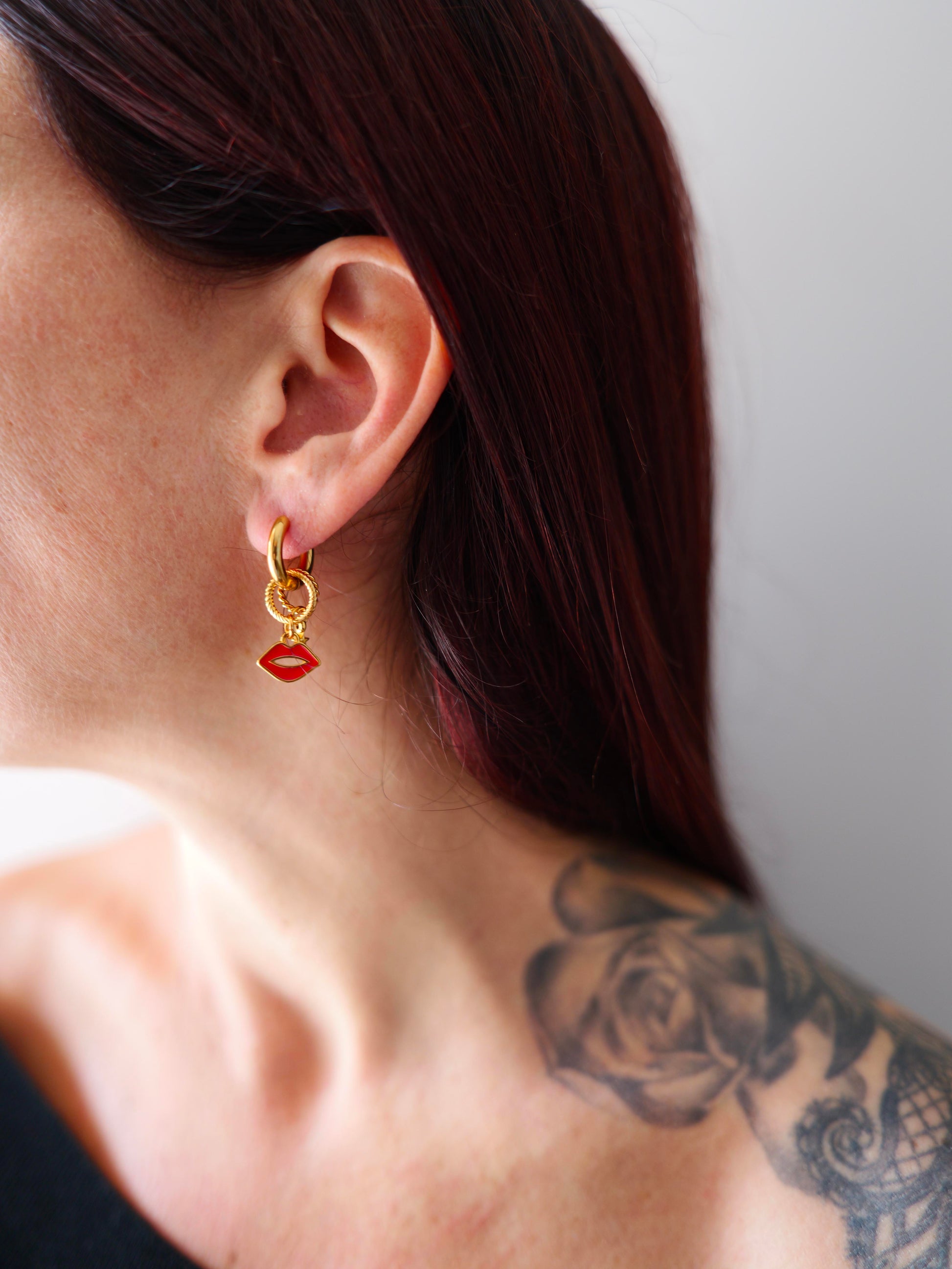 Red Kiss, un duo de boucles d'oreilles vibrant qui célèbre l'amour, au travers de ces 2 charms mêlant :
